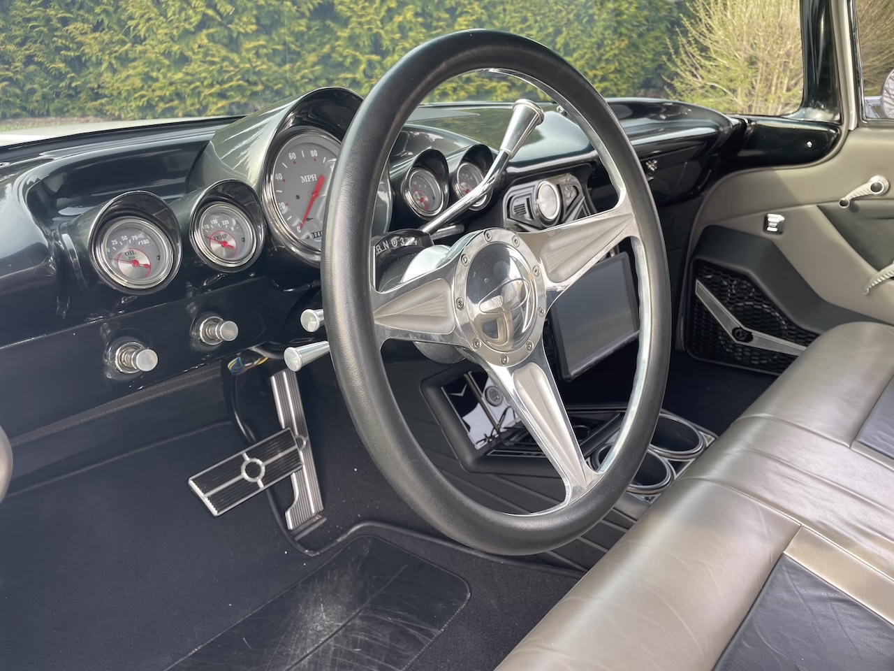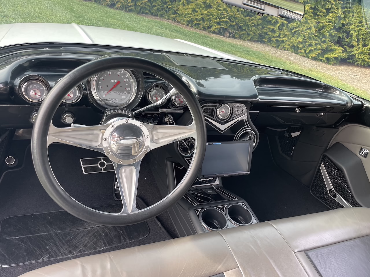 - Custom gauges and billet steering wheel