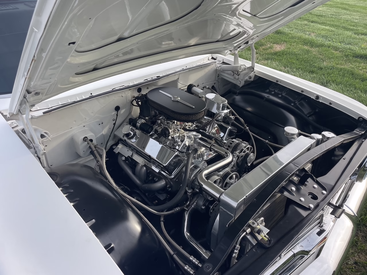 - Headers, billet front drive system, aluminum radiator