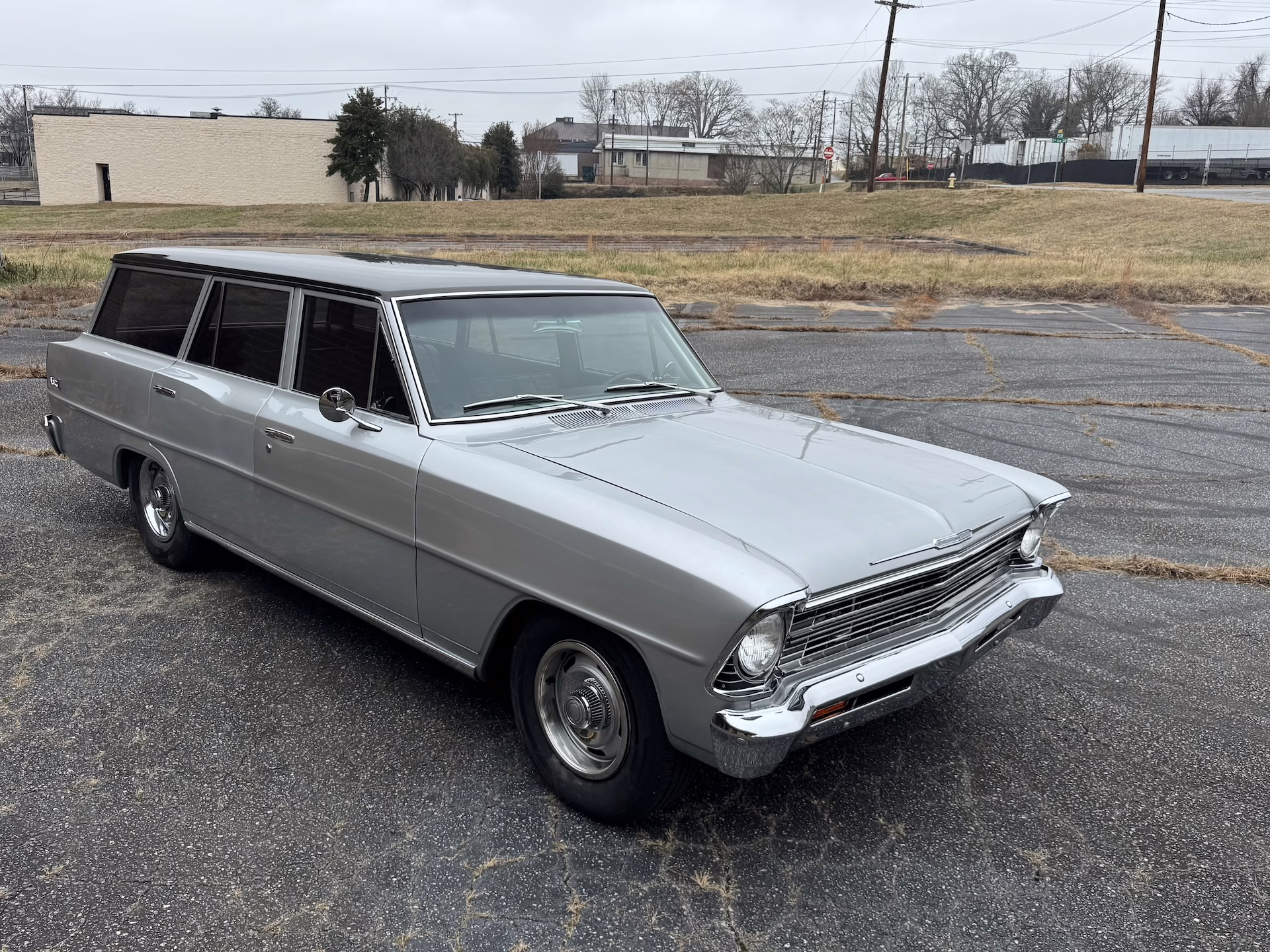 This beautifully built 1967 Nova Wagon pairs unmistakable classic looks with modern performance. Powered by a Chevrolet ZZ4 crate V8 and a 4L60 four-speed automatic, it delivers strong, reliable power with easy highway cruising. Finished in metallic silver with a contrasting dark gray roof, lowered for the perfect stance, and riding on Rally wheels, it has just the right mix of vintage charm and custom attitude. Inside, the black interior features a bench seat, rear flip-down seat, air conditioning, retro radio, and auxiliary gauges, making it as comfortable as it is cool. A rare, well-sorted wagon that’s ready to drive and guaranteed to draw attention wherever it goes.