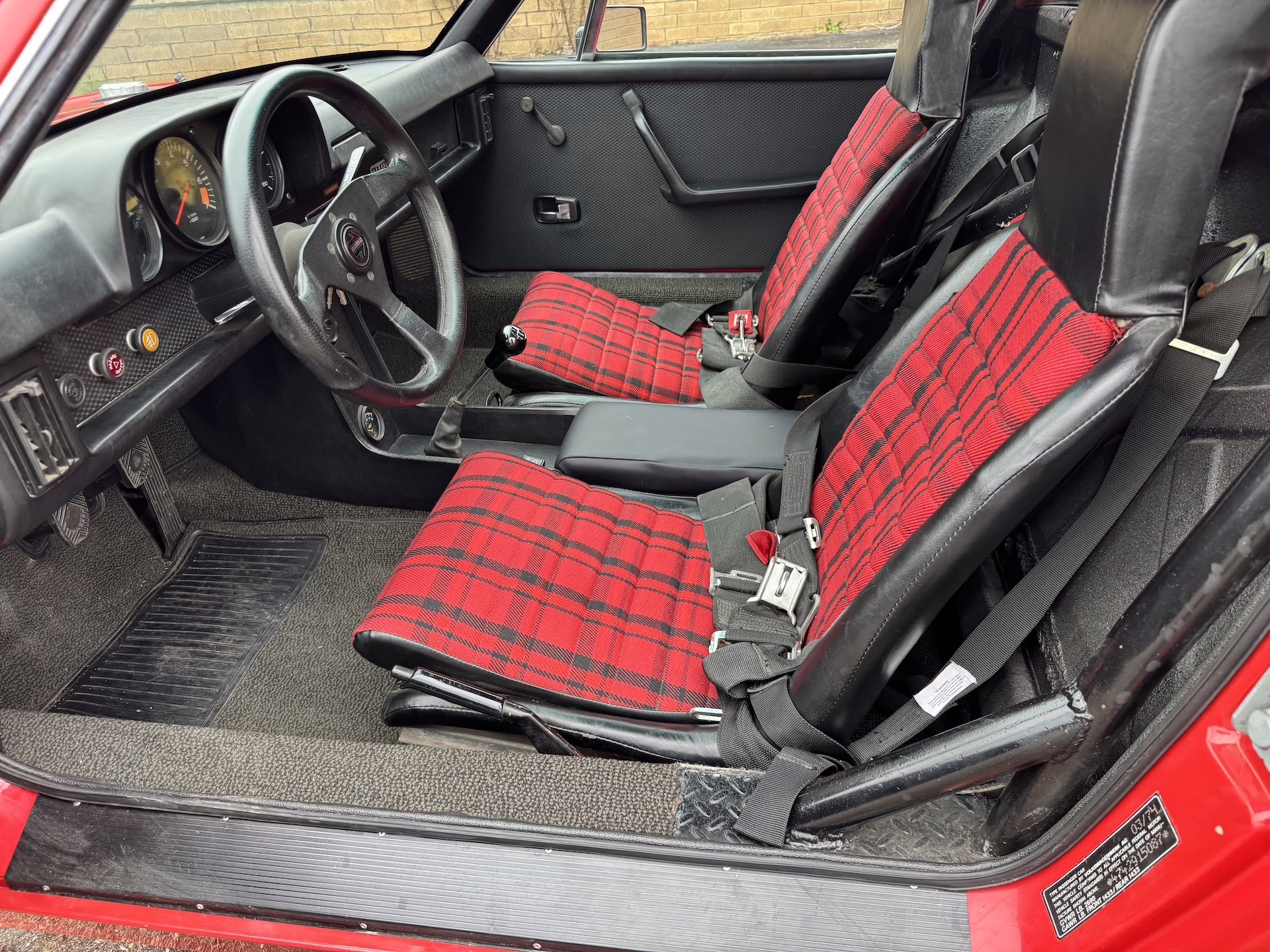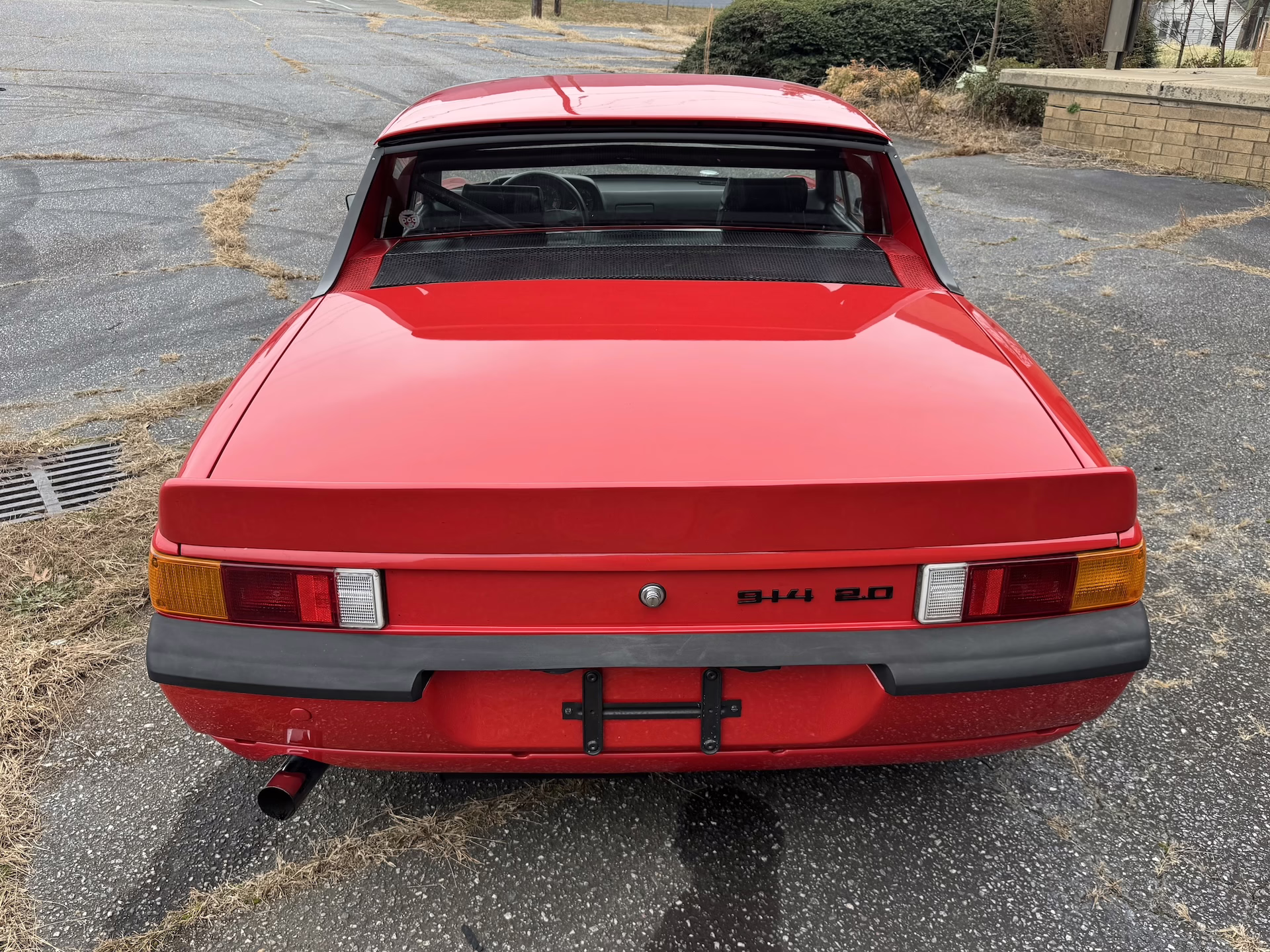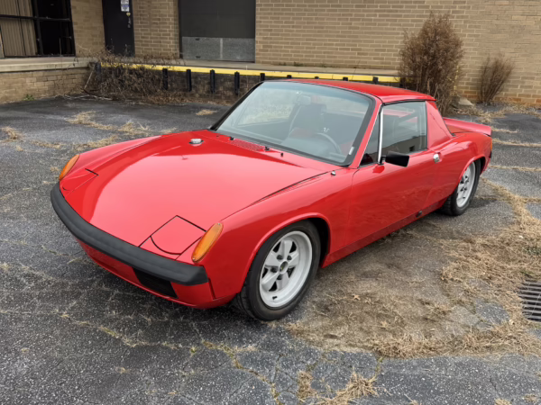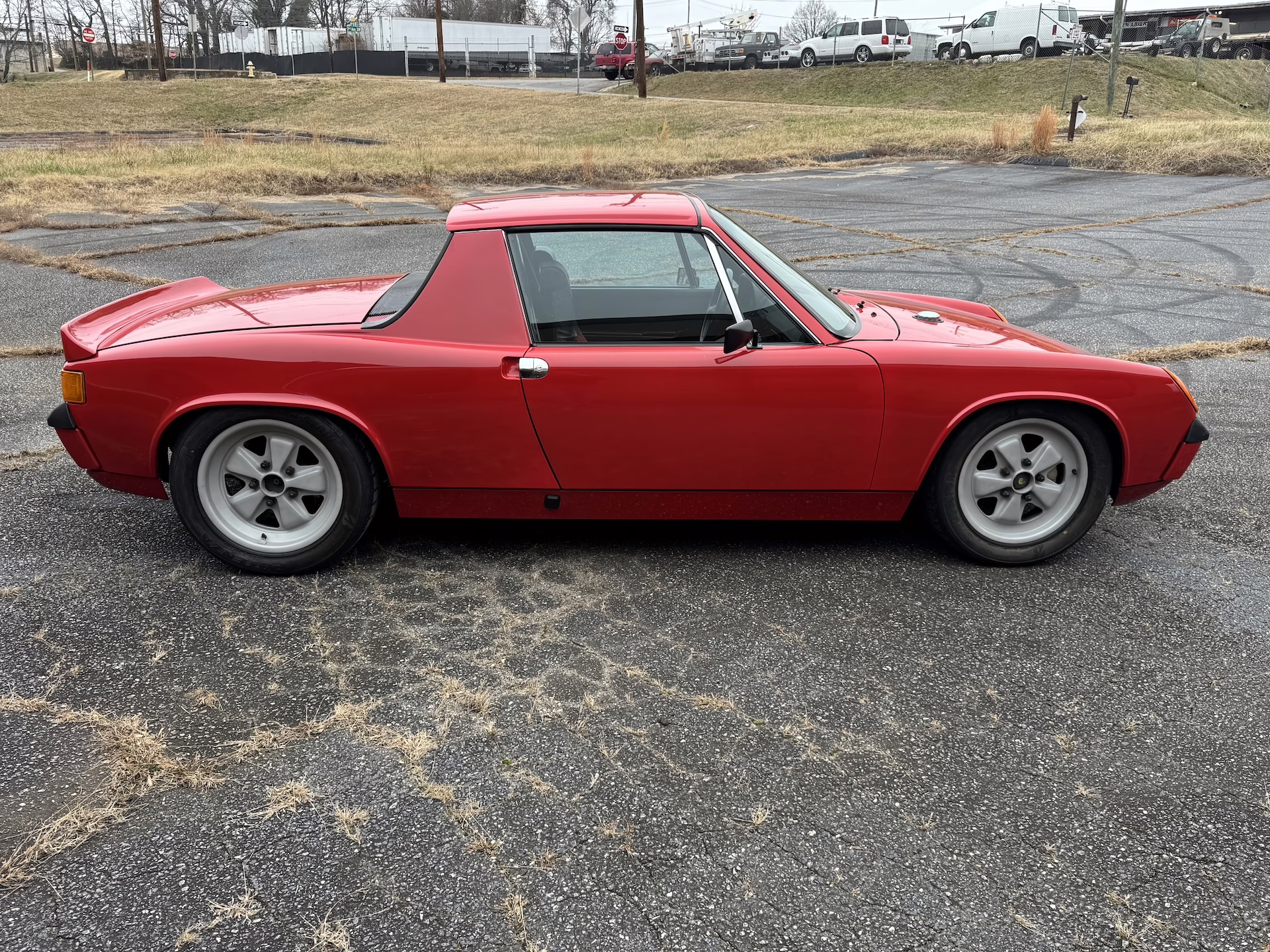 A bold 1974 Porsche 914 built to 914/6 specifications, this Guards Red street/track weapon delivers raw, air-cooled performance with a 2.8L flat-six, Weber carbs, and classic Fuchs alloys. Lowered, braced, and equipped with four-wheel disc brakes, it offers razor-sharp handling and unmistakable Porsche sound. Purposeful, lightweight, and aggressively styled with 916-inspired details—this is a driver-focused Porsche built to be driven hard and enjoyed fully.