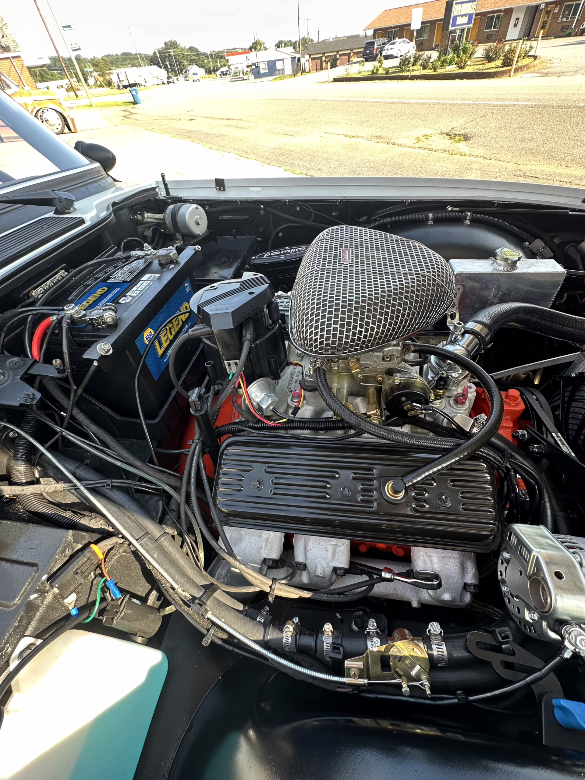 Under the hood is a Chevy 4.3L V6 built by Ken Meroney of Gibbs Racing, featuring 9:1 compression, performance cam and heads, Edelbrock intake and carb, and dual exhaust. Power is delivered through a TH350 automatic with shift kit and a limited-slip differential from a Nissan 300ZX, backed by Good Engineering CV joints.