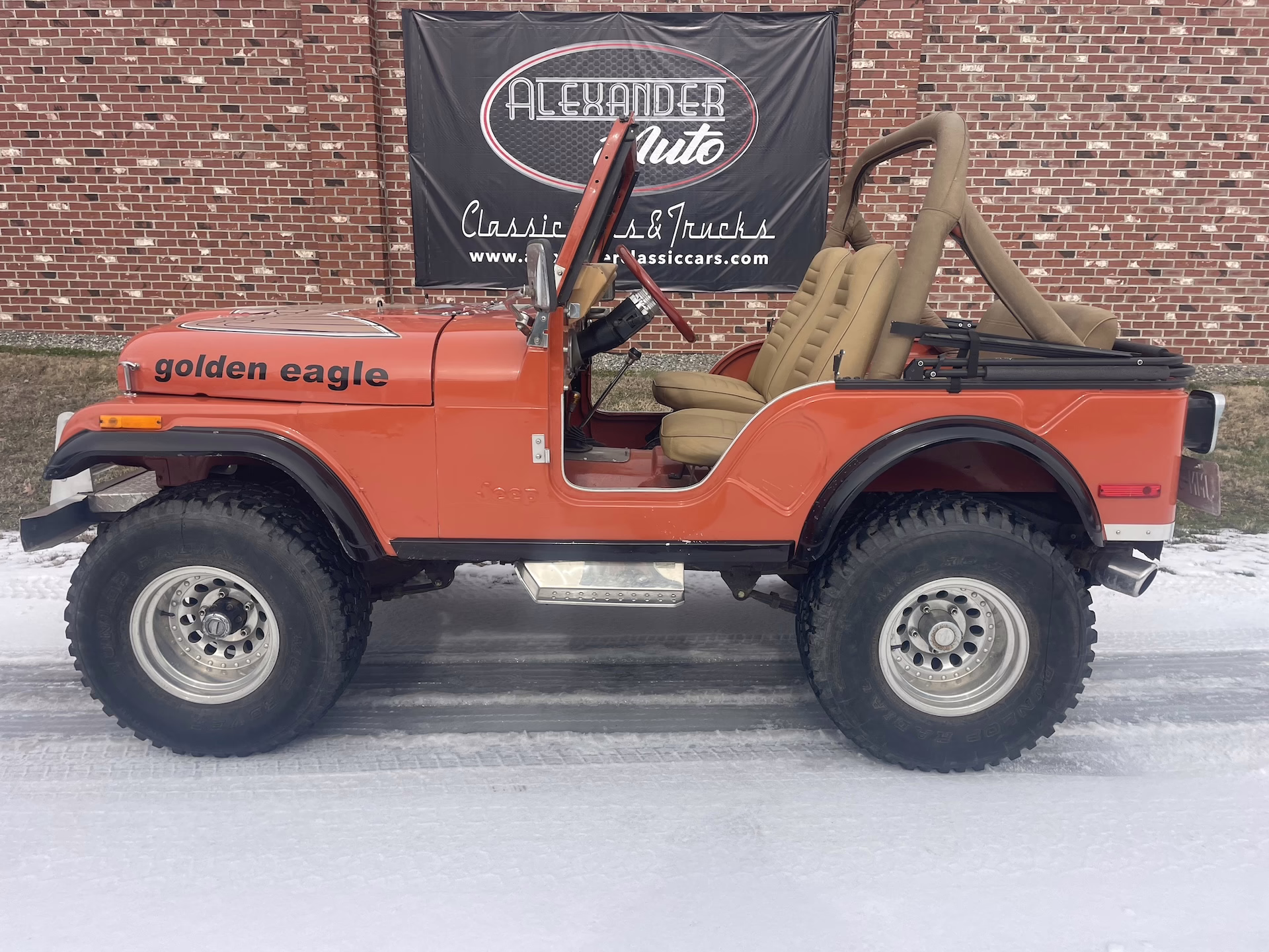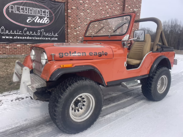 This 1977 Jeep CJ5 is a classic slice of American off-road history, finished in eye-catching orange paint with iconic Golden Eagle graphics that instantly take you back to the golden era of Jeep performance. Short-wheelbase, rugged, and full of attitude, this CJ5 delivers the raw, mechanical driving experience that made these Jeeps legendary.