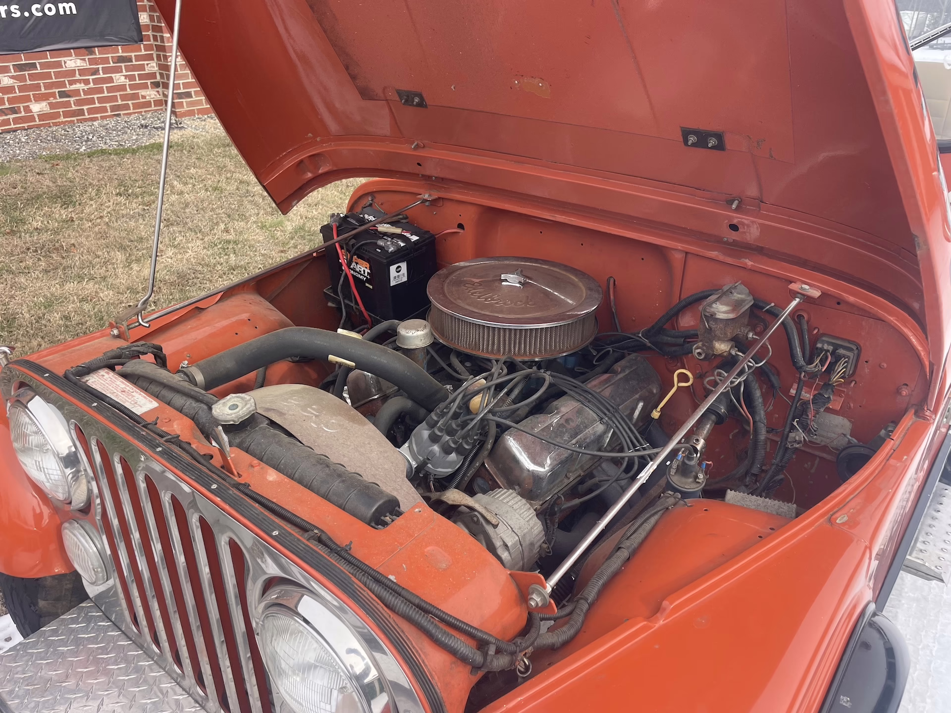 Under the hood sits a stout 304 V8, paired with a 3-speed manual transmission and four-wheel drive, giving this CJ the torque and trail capability enthusiasts crave. A four-barrel carburetor, along with chrome valve covers and a matching air cleaner, adds both performance flair and classic under-hood appeal.